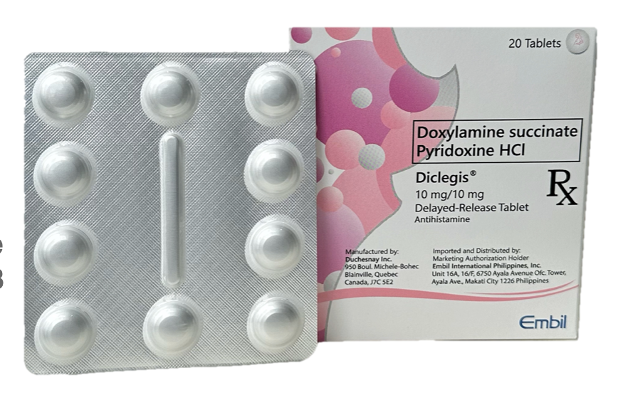 Diclegis (Doxylamine succinate 10 mg, pyridoxine HCI 10 mg) is indicated for the symptomatic treatment of nausea & vomiting of pregnancy in women who do not respond to conservative management.